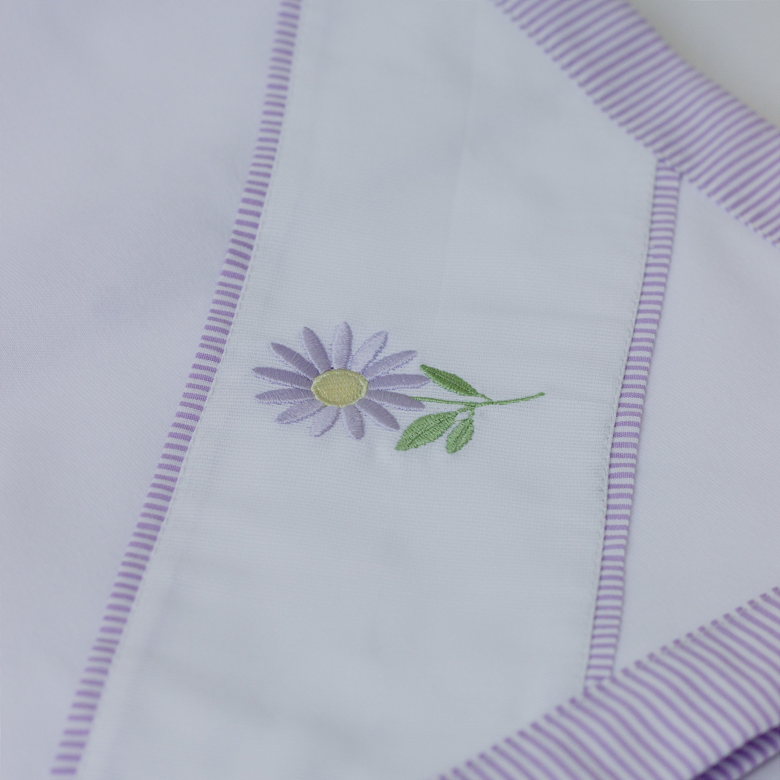 Possui detalhe bordado e barra em tecido, que acrescentam um toque de charme e elegância ao enxoval.